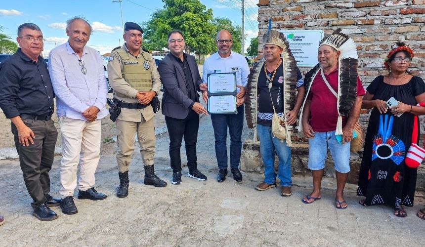 Foto: Entrega simbólica do ponto de internet gratuita na comunidade indígena Kariri Xocó.